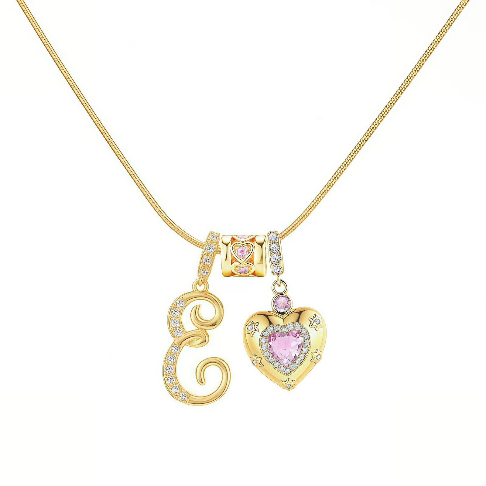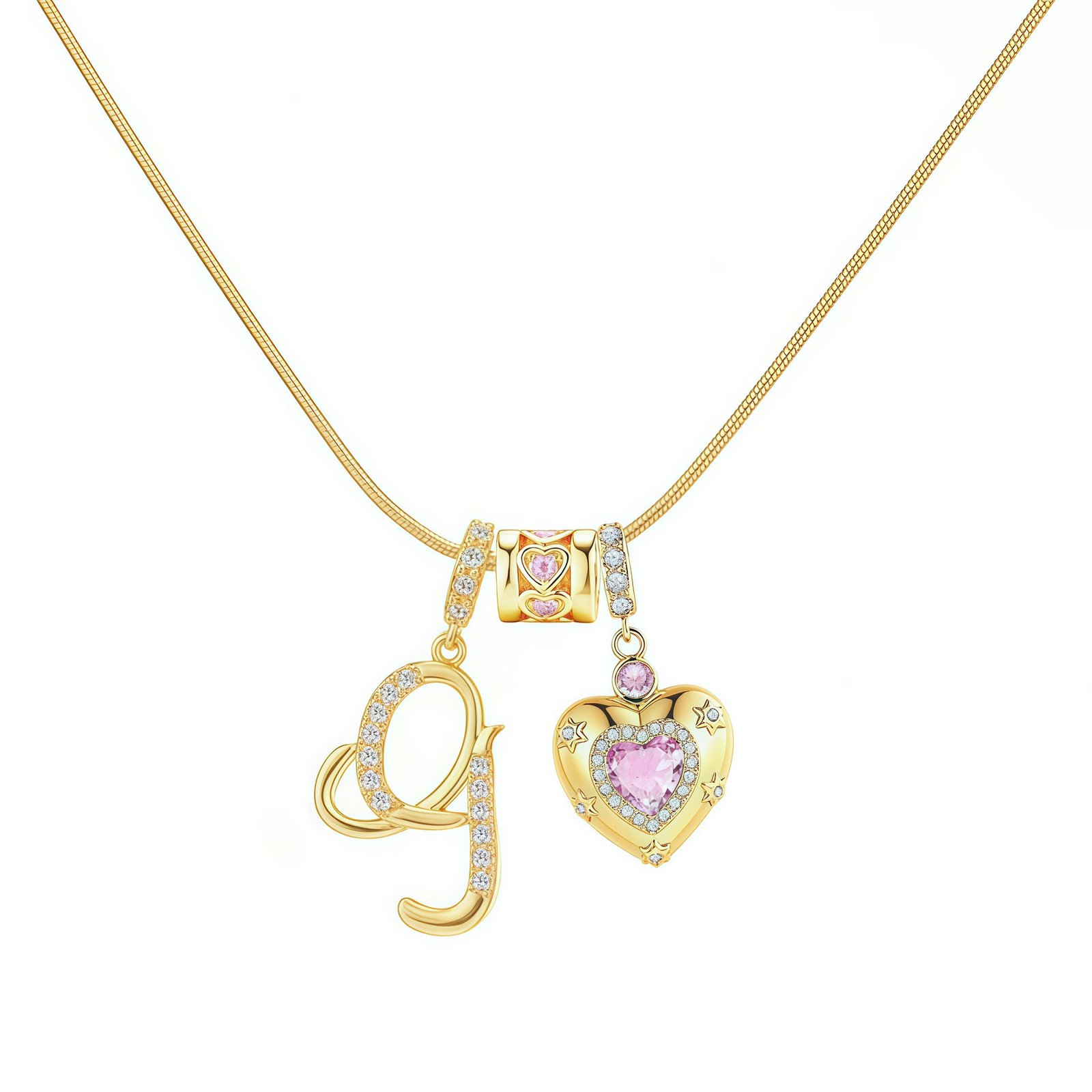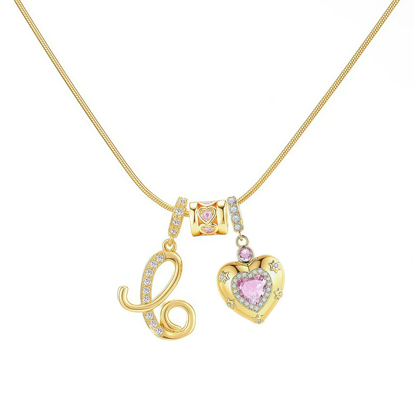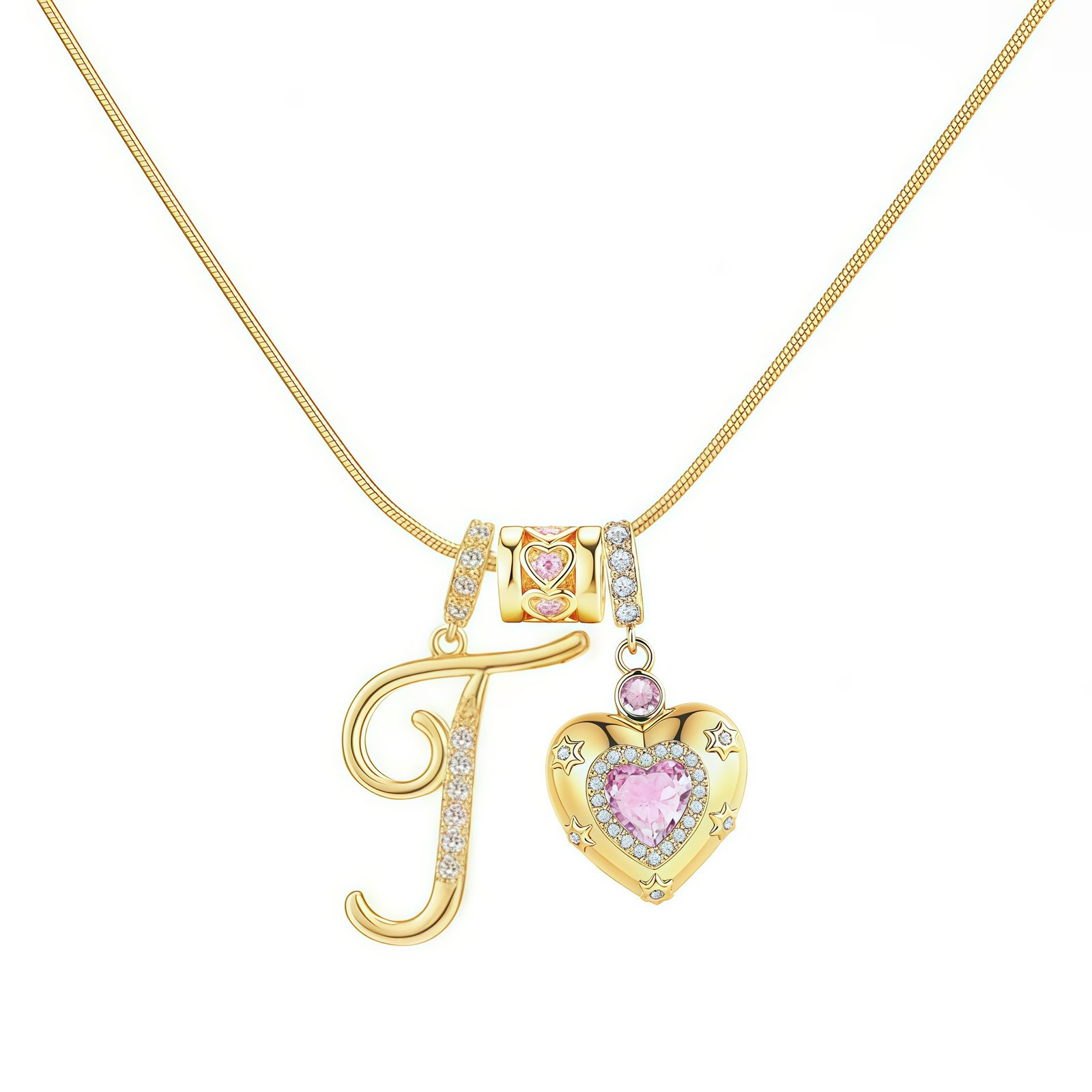 The Bella Whisper Gold Heart Letter Necklace is more than just a piece of jewelry; it’s a radiant celebration of love and individuality. Featuring a warm gold chain paired with a sparkling pink diamond heart, this necklace offers all 26 English letters for your selection, allowing you to engrave initials, secret codes, or personal symbols that resonate with your heart.