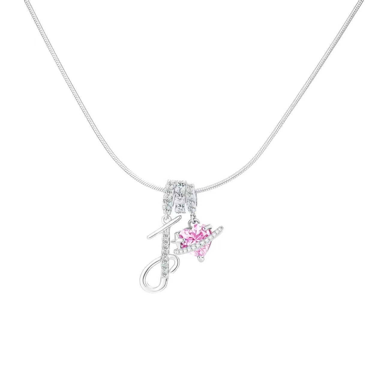 The Bella Whisper Pink Diamond Heart and Star Letter Necklace is more than just a piece of jewelry; it’s a heartfelt expression of love and aspiration. Featuring a delicate silver chain that gracefully showcases a charming heart and star design, this necklace is adorned with sparkling pink diamonds that add a touch of sweetness and elegance. With all 26 English letters available for customization, you can engrave your initials, special dates, or meaningful words that reflect your unique journey.