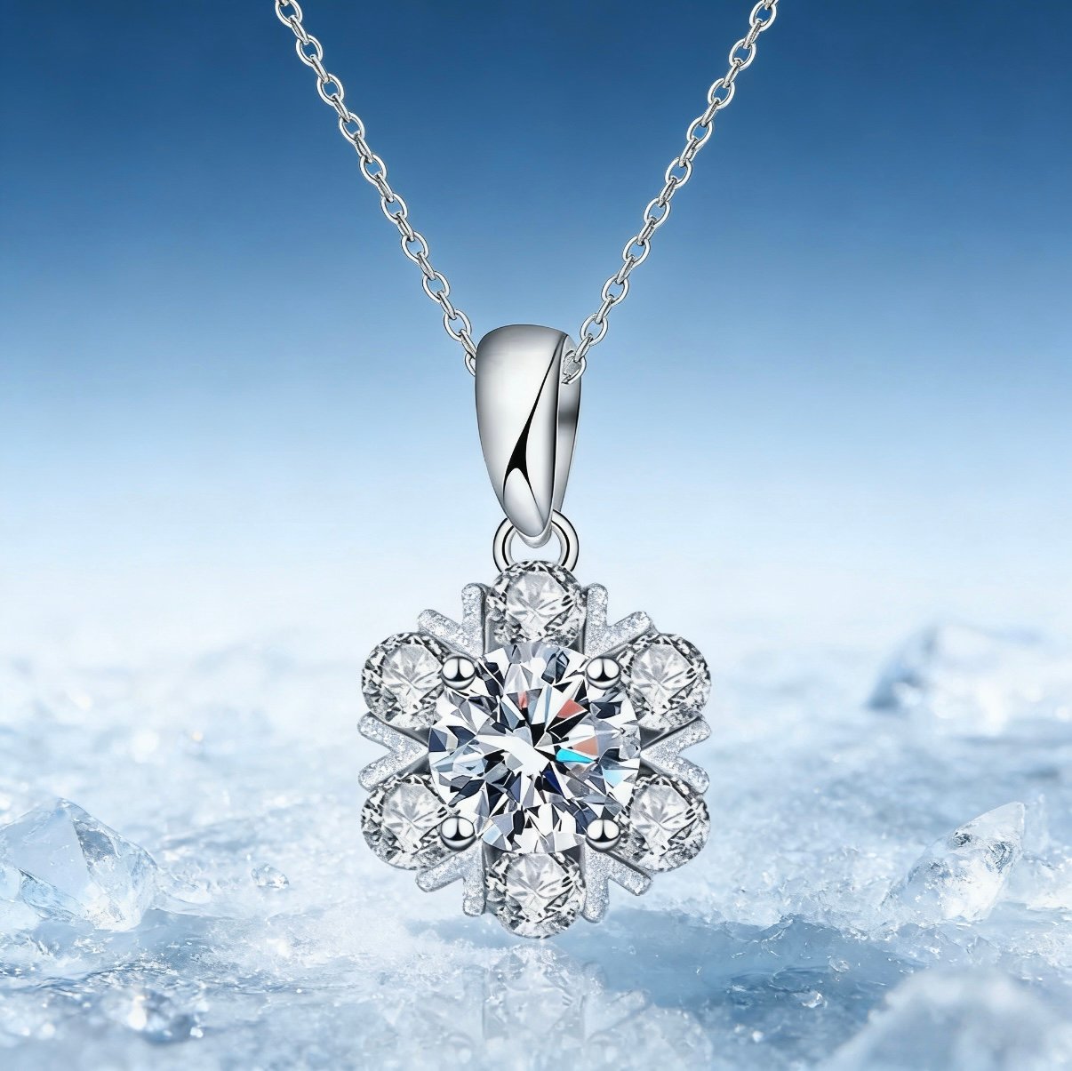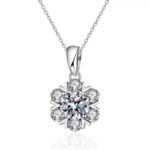 The 1-Carat Moissanite Snowflake Necklace is more than just a piece of jewelry; it’s a stunning embodiment of winter’s beauty and romance. Crafted from exquisite moissanite and accompanied by a GRA certification, this necklace features a minimalist snowflake design that is both sleek and sophisticated. The surrounding diamonds elegantly embrace the central stone, radiating a crisp brilliance that symbolizes “winter romance, pure and pristine.”
