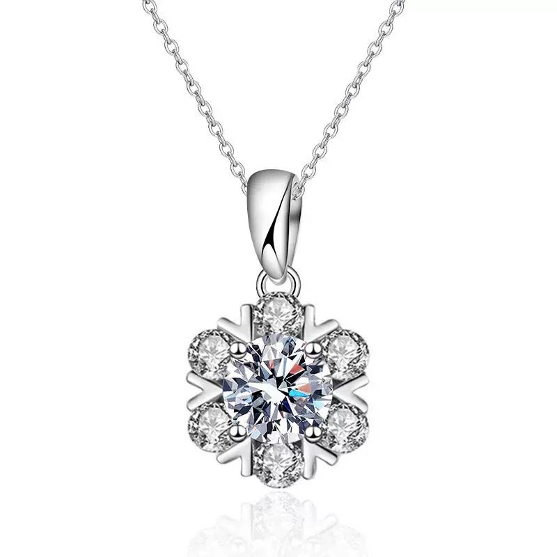 This necklace effortlessly transitions from a captivating everyday accessory to a breathtaking statement piece for special events. Its silver-white finish beautifully complements autumn and winter outfits, enhancing your look with a touch of cool elegance. Ideal for daily wear or as a thoughtful gift, it embodies the perfect blend of style and sentiment. With the Moissanite Snowflake Necklace, you can effortlessly illuminate your neckline and embrace the enchanting spirit of winter.