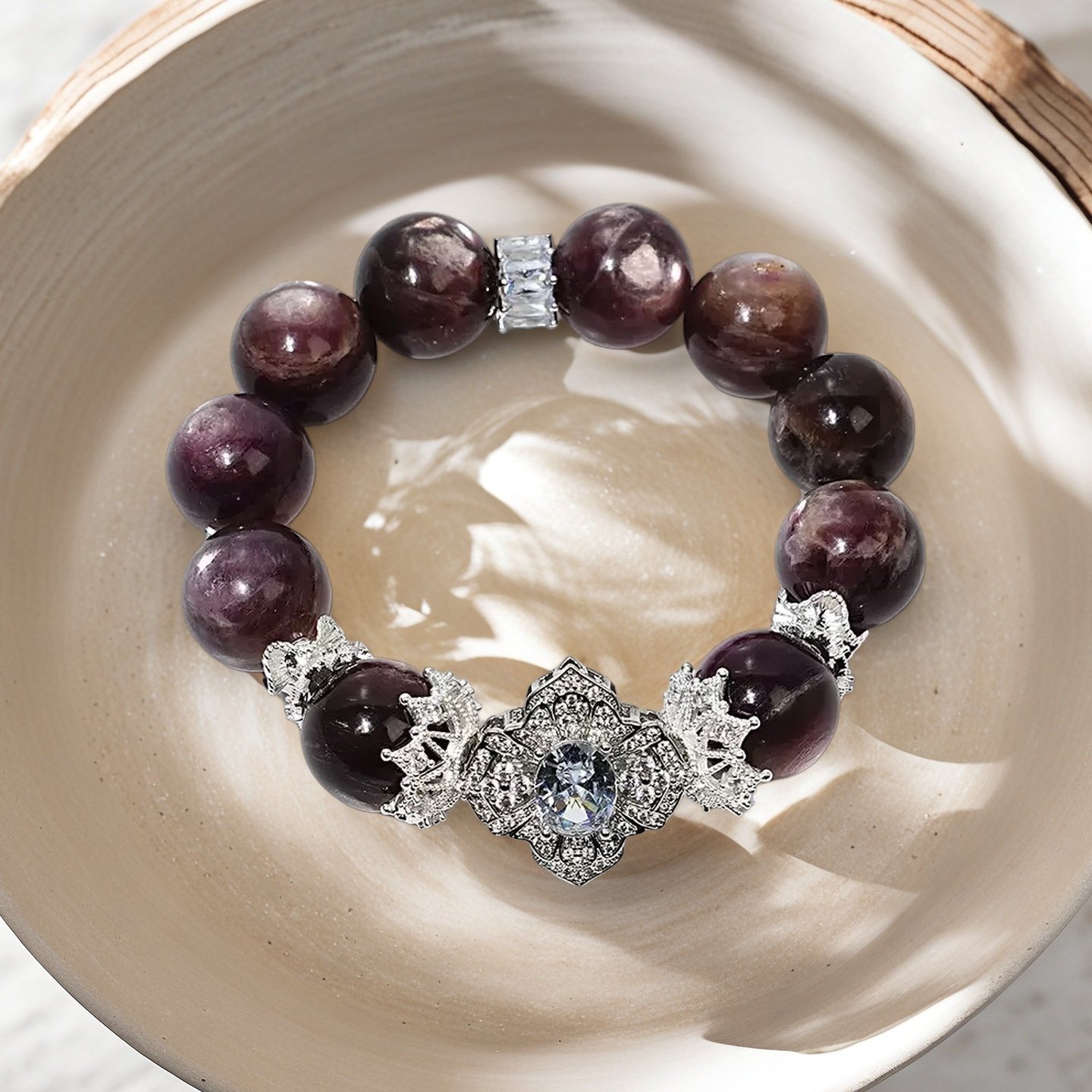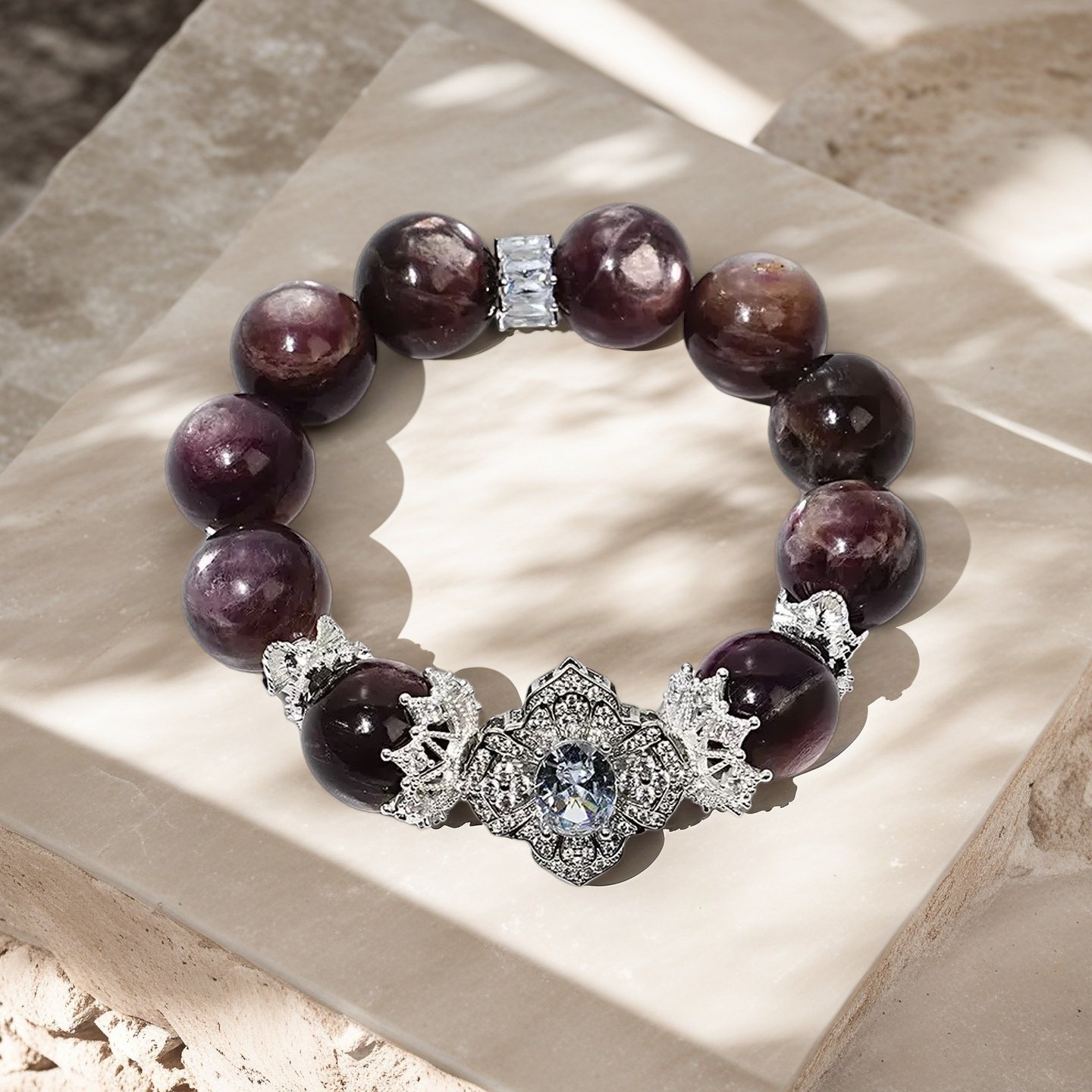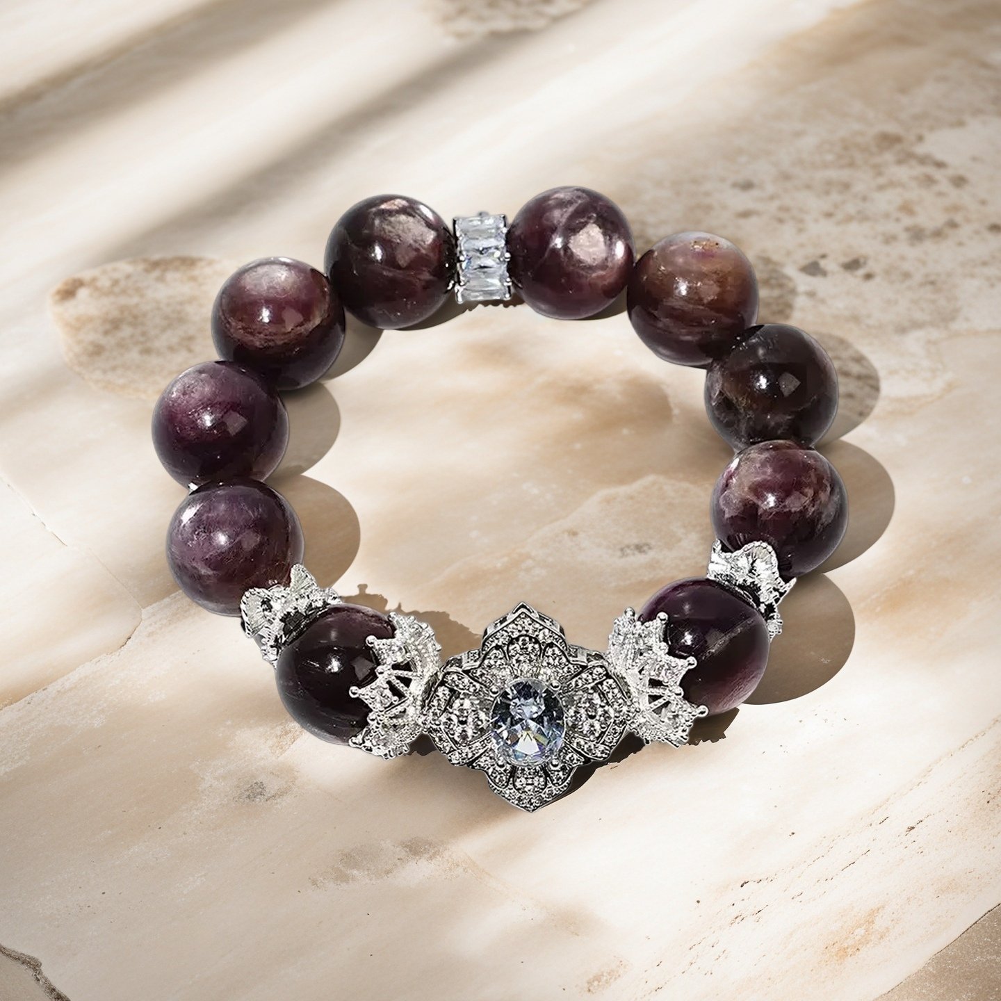 The Serene Purple Lithium Mica Bracelet also serves as a powerful tool for spiritual enhancement. It strengthens your intuitive abilities, helping you perceive your surroundings with greater clarity and insight. This crystal is ideal for deepening meditation practices and fostering inner exploration, allowing you to connect with your higher self and unlock your true potential.